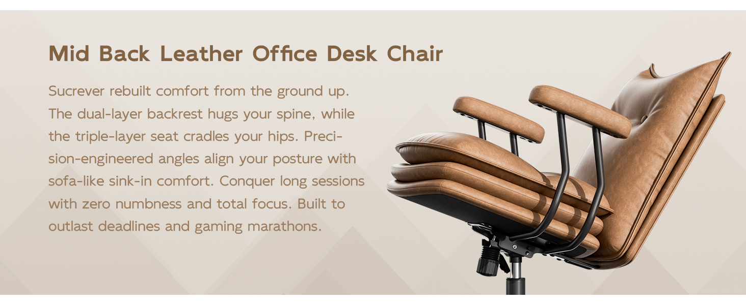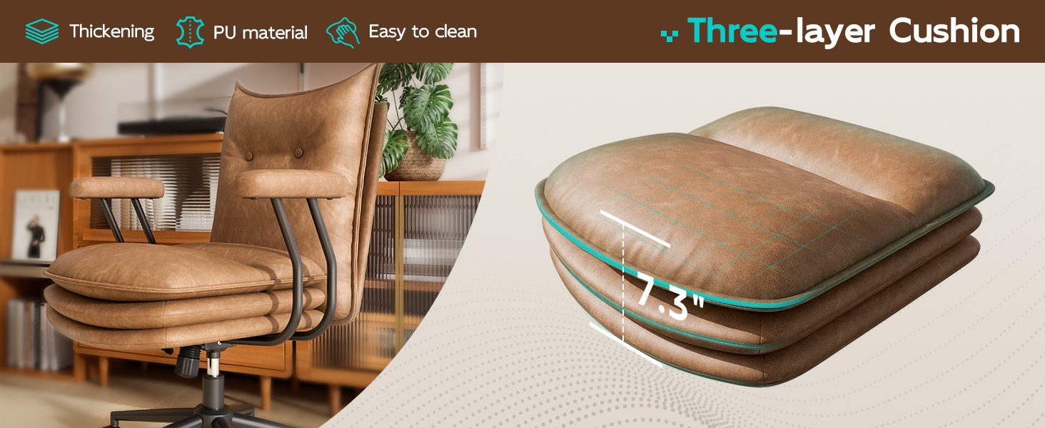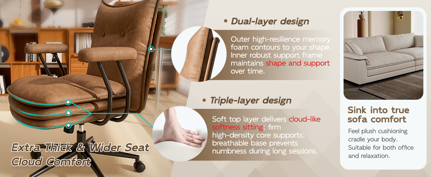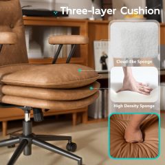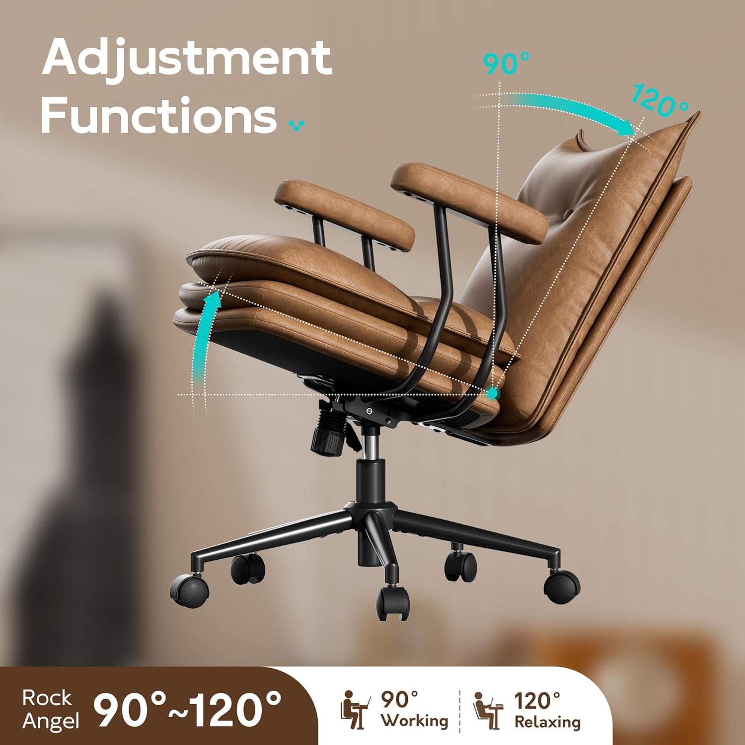 Experience all-day comfort and ergonomic support in this leather office chair, featuring a 360-degree swivel, 90-120° recline, and easy assembly, making it a versatile and sturdy addition to any home office or living space.